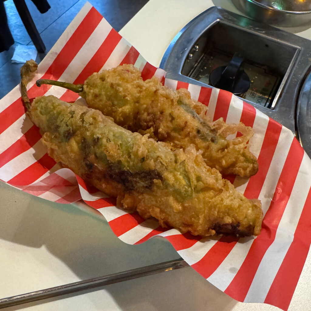 맵지 않으면서 고추의 풍미와 속 안을 꽉 채운 고기와 야채들의 맛이 어우러진다. 속이 꽉 찬 고추튀김에 맥주 한잔을 벌컥벌컥 들이켰다.