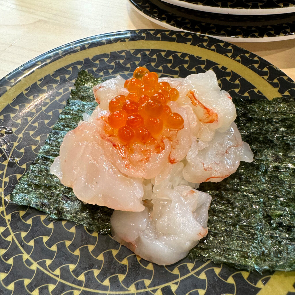 다음은 새우(에비) 3종. 익힌 새우, 단새우, 생새우로 구성되어 있는데 마구로를 포함해서 이 3가지는 거의 3~4 접시씩 먹는다. 이걸 맛보려고 초밥 먹는다고 해도 과언이 아니다.